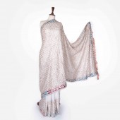 Saree Pure Crinkle White - Gota L.C.D --- Desgin # 1