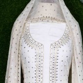 Suits 2PCS Silk White - Fine Mukesh Chandi Patii Korean Raw Silk Desgin # 1