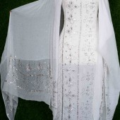 Suits 2PCS Pure Crinkle White - Fine Mukesh -- Silver Shade 220515-L-7000-3