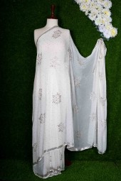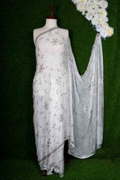 Saree Pure Crinkle White 75T Mukesh Regular Chandi Patii Silver Shade O.S.P