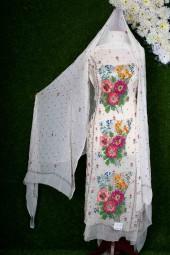 Suits 2PCS Pure Crinkle White - Cross Stitch Center Panel & Mukesh Desgin # 6